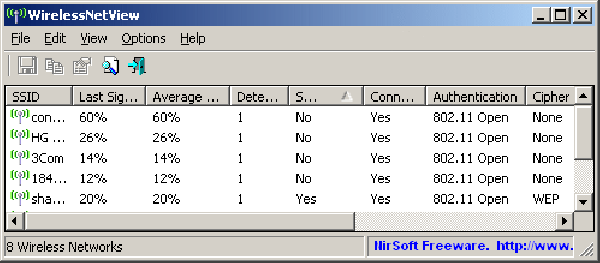 WirelessNetView – небольшая программа, являющаяся полезным инструментом для сканирования окружения на наличие беспроводных сетей. Для каждой из обнаруженных точек, программа выдает исчерпывающую информацию.