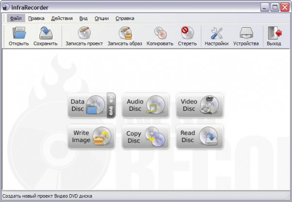 InfraRecorder – это программа с открытым исходным кодом для записи компакт дисков. С помощью нее вы сможете прожжешь любой тип CD/DVD дисков, включая запись Audio CD и DVD видео.