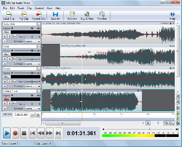 MixPad – это многодорожечный звуковой микшер предназначен для профессиональной аудио-продукции. Она позволяет загружать и записывать аудио клипы и смешать их вместе.