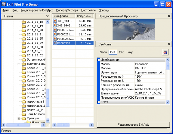 редактирования, создания EXIF, EXIF GPS и IPTC данных. Импорт/экспорт из/в