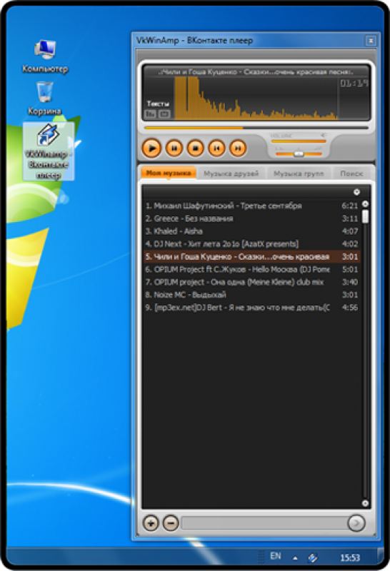 VkWinAmp - это первый ВКонтакте плеер для рабочего стола