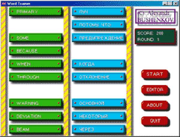 English Word Trainer – небольшой тренажер, позволяющий изучить английский язык в форме игры. Все гениальное просто: вам просто нужно сопоставить десять предложенных английских слов с таким же количеством русских.