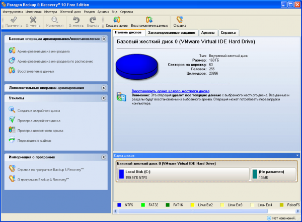 Backup & Recovery Free Edition – это полнофункциональное программное обеспечение с помощью которого вы сможете осуществить резервное копирование данных и их восстановление в случае утери.