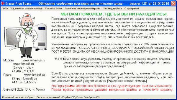 Eraser Free Space - удобная программа для полного и безвозвратного удаления данных с жесткого диска. Если вам нужно избавиться от ценной информации, которая не должна попасть в чужие руки, то Eraser Free Space – ваш выбор!