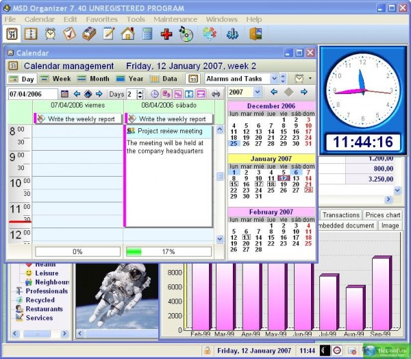 Профессиональный органайзер, способный хранить всю вашу персональную информацию в одном месте. Есть экспорт в PDF-формат. Включает календарь, контакты, будильник, напоминалку, средство для хранения паролей. Хранит дни рождений ваших близких.