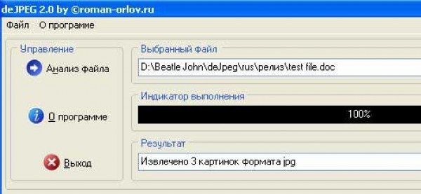 deJpeg – это бесплатный инструмент, позволяющий вытаскивать «зашитые» jpeg изображения из любых файлов. При помощи deJpeg вы сможете выдернуть картинки из data, exe и других файлов.