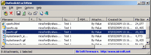 OutlookAttachView – это небольшая утилита, которая производит сканирование сообщений, хранящихся в базе Outlook и выдает список всех вложенных файлов.
