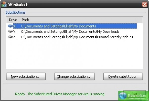 xsubst представляет собой фукнциональный аналог консольной утилиты subst и позволяет создавать, изменять и удалять так называемые "virtual drives", используя GUI вместо командной строки.Распространяется с исходными текстами (C++/MFC).