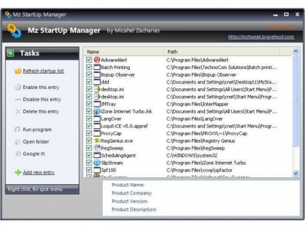 Mz StartUp Manager – мощная программа, позволяющая вам управлять меню автозагрузки. Вы сможете полностью настроить список программа, которые будут запущены при старте системы.