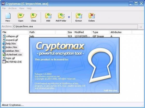 Cryptomax – это мощный инструмент для шифрования данных со знакомым по программе WinZip интерфейсом. Работа с Cryptomax полностью повторяет работу со знаменитым архиватором, только на выходе вы будете иметь не архив, а шифрованную информацию.