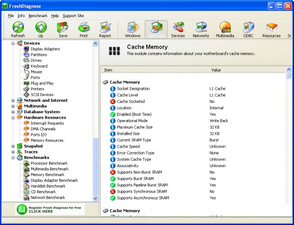 Бесплатная утилита для анализа производительности вашей системы. Сканирует вашу систему и выдает подробный отчет о аппаратном и программном обеспечении. Экспорт отчета в файлы различных форматов. Для того, чтобы получить полнофункциональную версию программы, необходимо пройти бесплатную регистрацию на сайте разработчиков.