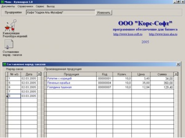 Программа Учет производства в кулинариях, кондитерских цехах, барах, ресторанах и т.д.