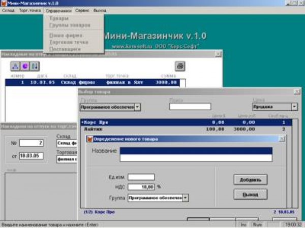 Программа для учета в рознице. Основное предназначение: учет там, где из-за большого количества продаж их невозможно вводить в компьютер. Подходит для продуктовых магазинов, магазинов быт.химии, торговых точек, ларьков и т.д. Оприходование товара, наценка, отпуск на торг.точки, ввод инвентаризаций, учет выручки, расчет долга.