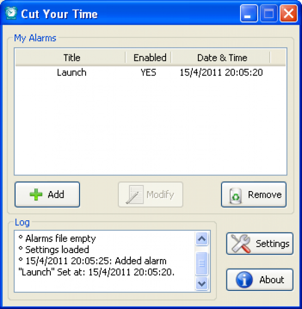 Cut Your Time – это небольшая утилита, предназначенная для оповещения пользователя о каких либо запланированных событиях. Вы можете легко создавать напоминания с определенной частотой, сопроводив их звуковыми и визуальными эффектами.