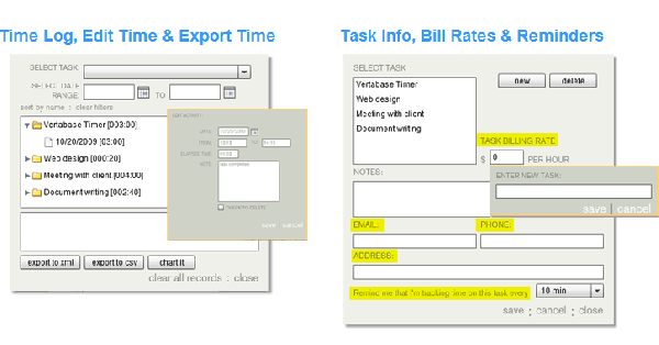 Vertabase Timer генерирует подробный отчет использования времени, которые могут быть экспортированы в XML и CSV форматах для использования в других приложениях.