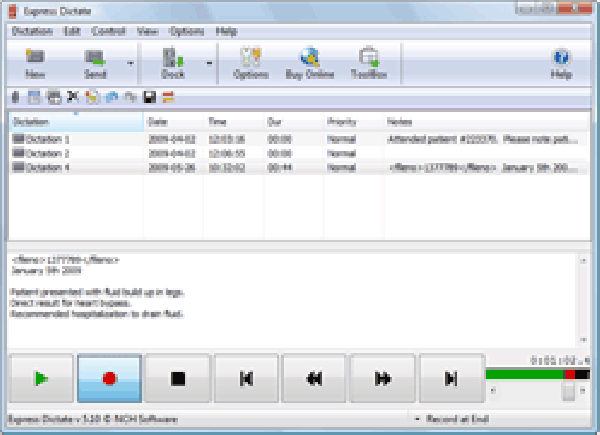 Express Dictate – программа, представляющая собой софтвенный диктофон, который вы сможете использовать для тех же самых целей, что и реальный. Например, вы сможете надиктовать текст, а затем отправить машинистке на перевод его в текстовый формат.