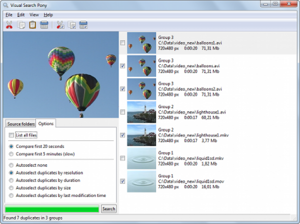 Visual Search Pony является удобной программой для организации ваших видеофайлов, который позволяет пользователям найти и удалить дубликаты файлов видео в различных форматах.