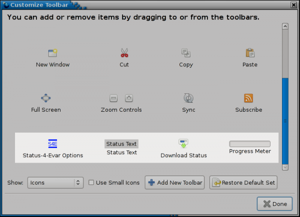 Status-4-Evar является адроном для Firefox 4 и представляет собой строку состояния виджетов и индикаторов.