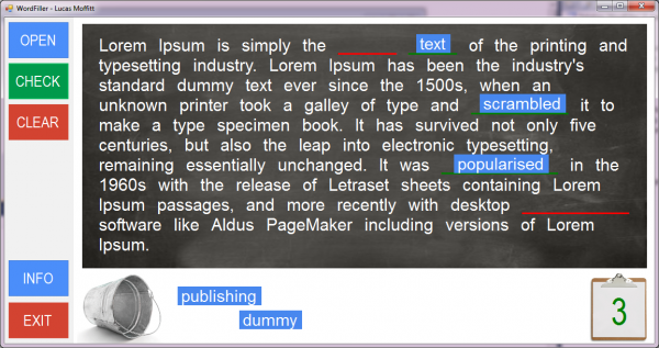 WordFiller – небольшая утилита для работы с интерактивной доской SMART Board, позволяющая выделять ключевые слова и фразы в тексте для лучшего их восприятия студентами.