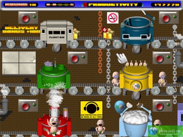 Оригинальная аркадная игра с прекрасной графикой. Игра происходит на самом странном заводе, который вы только могли себе представить: заводе производства детской продукции.