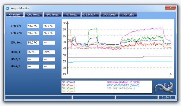 Argus Monitor – это программа для мониторинга температуры и состояния компонентов системы, таких как процессор, графический процессор и жесткий диск