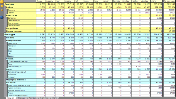 Основной акцент в программе сделан на понимании общей ситуации с доходами и расходами, на удобстве и легкости представления информации в разрезе года и даже более широкого периода. Это позволяет легко анализировать сложившуюся ситуацию, выявлять нехорошие тенденции увеличения расходов по некоторым категориям, значительно облегчает планирование на следующий месяц, год и несколько лет вперед.