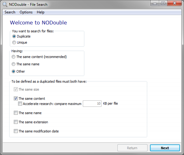 NODouble это небольшая и простая в использовании программа, которая позволяет искать и удалять дубликаты файлов на вашем компьютере.
