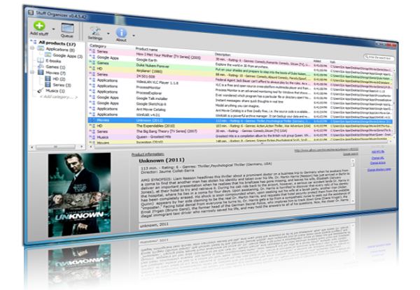 Stuff Organizer представляет собой удобный и простой в использовании инструмент для каталогизации ваших мультимедийных файлов. Благодаря Stuff Organizer доступ к вашей медиатеке станет более удобным.