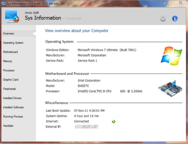 Sys Information - простая программа, предназначенная для просмотра информации о вашей системе. Она использует мало ресурсов, поэтому не будет тормозить работу вашей системы.