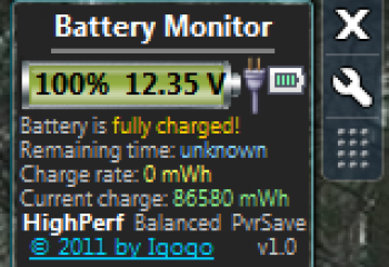 Battery Monitor показывает текущее состояние батареи и электропитания.