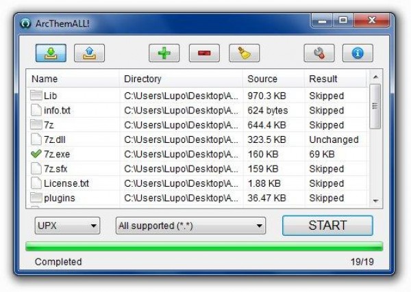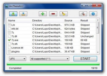 ArcThemALL! представляет собой удобный и простой в использовании архиватор файлов и папок с помощью UPX, MPRESS, ZIP и 7Z форматов.
