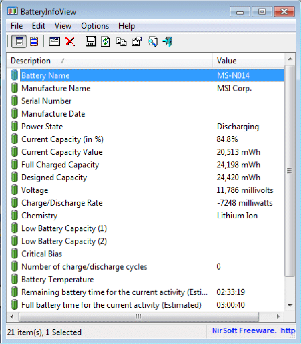 BatteryInfoView - это небольшая утилита для ноутбуков и компьютеров, которая отображает текущее состояние и сведения о аккумуляторе.