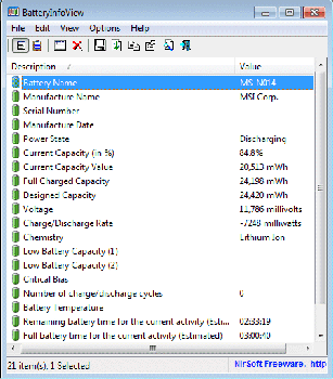 Особенности программы «BatteryInfoView»: