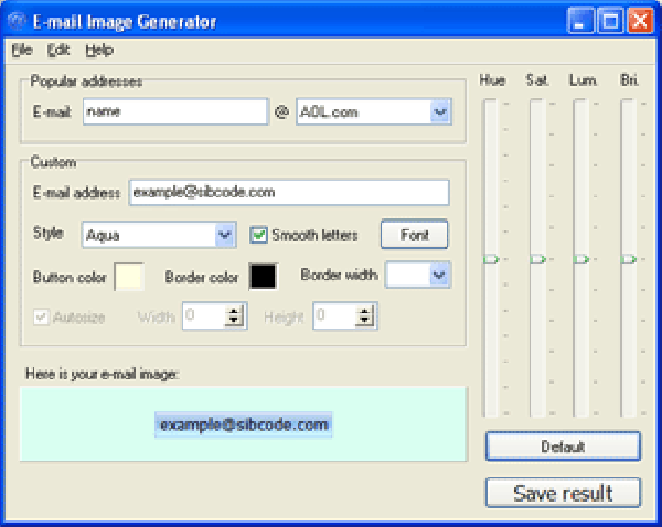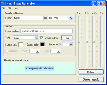E-Mail Image Generator представляет собой простое в использовании приложение для создания различных изображений, содержащих ваш адрес электронной почты.