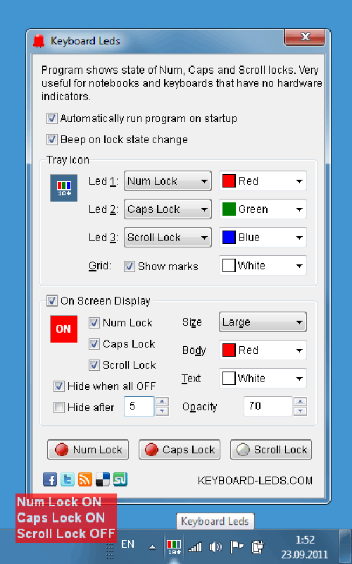 Keyboard Leds – небольшая утилита, предназначенная для вывода в системный трей информации о индикаторах клавиатуры, таких как Caps Lock и Num Lock.