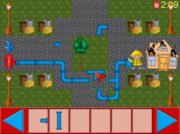 Вам хотелось когда-нибудь (особенно, в детстве) избрать героическую профессию? Если да, то у вас есть шанс попробовать себя в роли героя и помочь отважному пожарнику, которому надо спасти горящий дом. Много горящих домов. К счастью, это не сложно, вам нужно лишь правильно расположить части брандспойта - пожарного шланга, и подключить его к крану с водой. Думаете, это слишком просто? Ничего подобного - необходимо уложится в 3 минуты, только тогда вы успеете спасти здание. К слову, игра имеет второй режим - без времени, с более выраженной логической составляющей. Cпециально для тех, кто не мечтал в детстве стать пожарником :) Ну а если серьезно - то попробуйте поиграть. Простые правила позволят легко освоиться и взрослому, и ребенку.