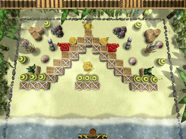 Этот арканоид перенесет вас на берег тропического острова, где под шум волн, пение птиц и приятную музыку вы будете разбивать огромным кокосом горы ящиков, бутылок, связки кольев и другие разнообразные предметы. Иногда из них будут выползать крабы с бонусами, и спешить к воде. Таким образом, помимо основной задачи, вам еще придется и следить за крабами, чтобы успеть поймать приятный бонус. Одним словом - расслабьтесь, и представьте себя на месте Робинзона Крузо, который нашел себе достойное развлечение!