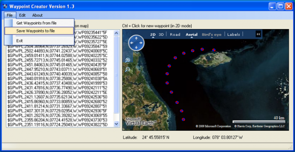 Waypoint Creator – это маленькая, но удобная программа для создания путевых точек с использованием технологии Microsoft's Virtual Earth. Вам просто нужно указать на карте место, чтобы создать новую путевую точку, которая автоматически добавляется в маршрут.