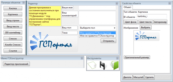 Первая официальная версия редактора приложений ГСКонструктор, от автора cms ГСПортал.