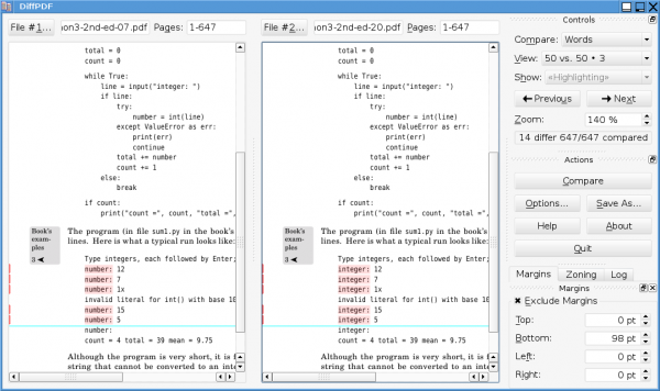 DiffPDF - это небольшое и простое в использовании приложение, разработанное чтобы помочь вам сравнить два файла PDF. Она предлагает три режима сравнения: слова, символы и внешний вид.