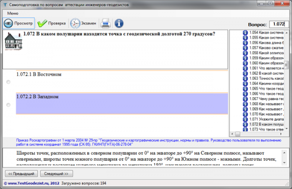 TestGeodezist 1.1 (Самоподготовка по вопросам аттестации инженеров-геодезистов) 1.1