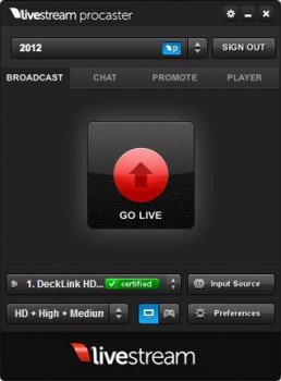 Livestream Procaster – бесплатное приложение, которое позволяет создавать живые трансляции с необычайной легкостью. Одним кликом вы сможете начать трансляцию игры, чата или потока с камеры.