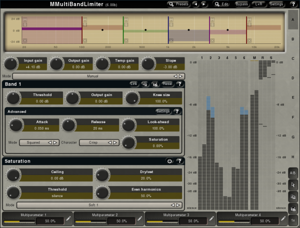 MMultiBandLimiter – это VSt плагин, предназначенный для лимитирования уровня звука в музыкальных треках. В сможете повысить уровень громкости, избежав звуковых артефактов.