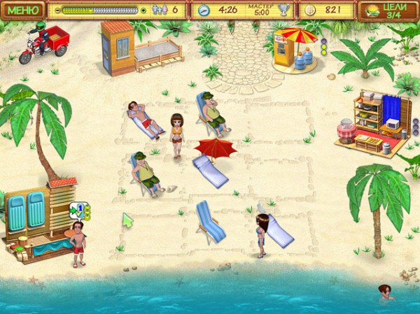 В этой интересной и увлекательной игре вам предстоит не только освоить азы пляжного бизнеса, но изрядно постараться в попытке набрать рейтинг выше, чем у главного соперника. Следите за тем, чтобы отдыхающие были довольны, приносите им вовремя прохладительные напитки, бутерброды, сдавайте в прокат надувные матрасы и не забудьте про зонтики, защищающие от солнца.