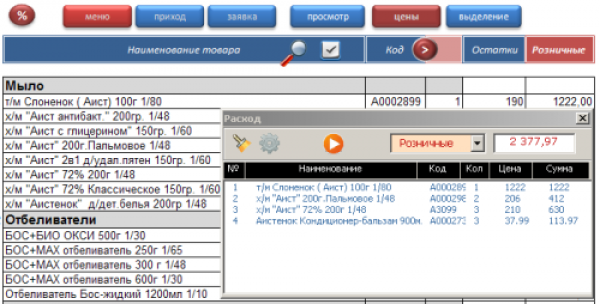 -вывод на печать расходных и приходных накладных