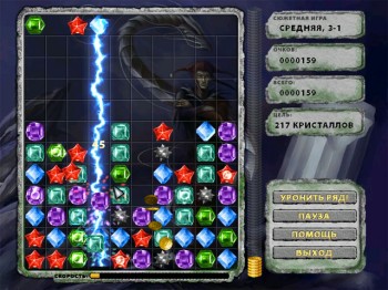 Справиться с непрекращающимся драгоценным дождем поможет только мгновенная реакция и точный расчет. Но не забывайте и о магических бонусах: "бомба" выкинет с игрового поля мешающую фишку и несколько ее соседок, "молния" полностью освободит одну вертикальную колонку, а волшебная палочка поможет перекрасить фишки в подходящий цвет.