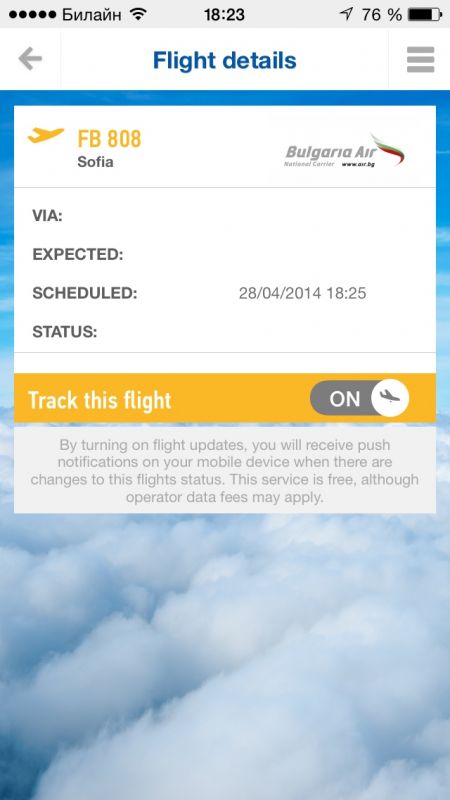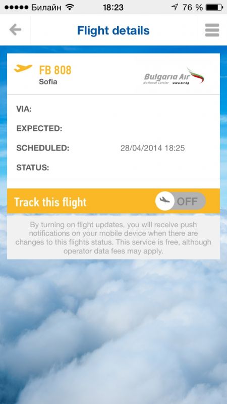- Возможнрость отслеживать информацию о рейсе через пуш-уведомления.