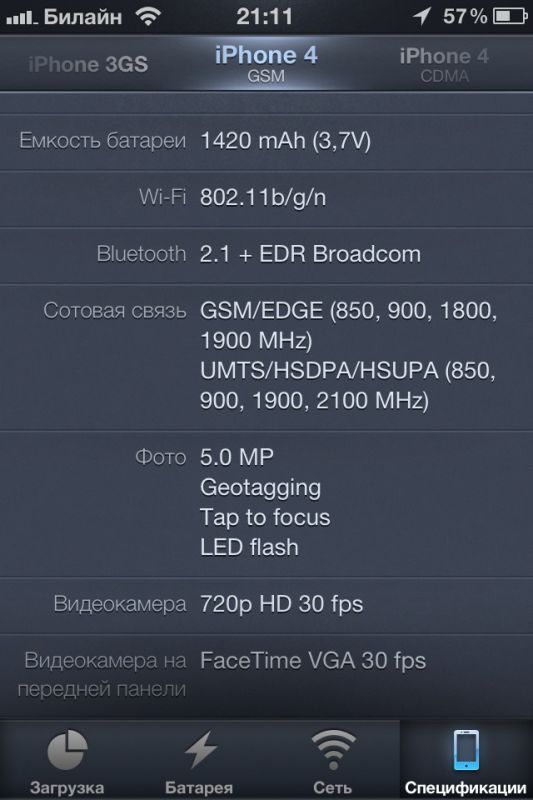 - быстрый переход к спецификациям и "паспорту" устройства