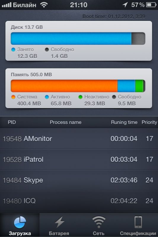 Activity Monitor – утилита, позволяющая вам просматривать системную информацию о вашем мобильном устройстве.