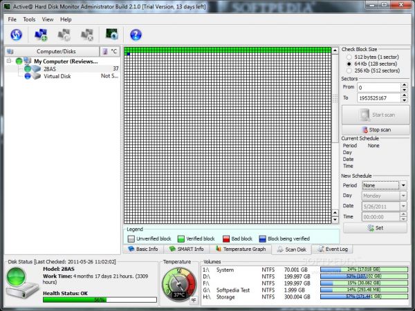 Active@ Hard Disk Monitor - будет интересна всем, кто следит за своим персональным компьютером и интересуется, куда пропадает свободное место на жестком диске. Вы сможете предотвратить потеря важных данных и получите подробный отчет о состоянии комплектующего.